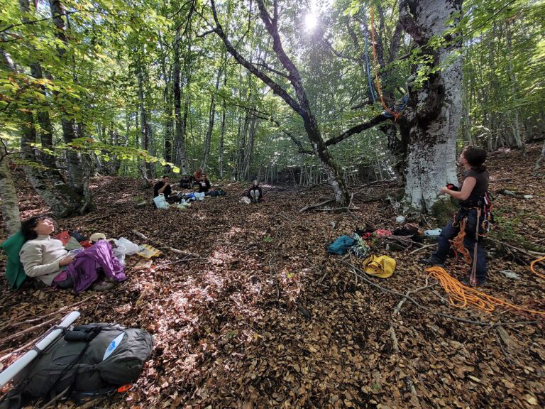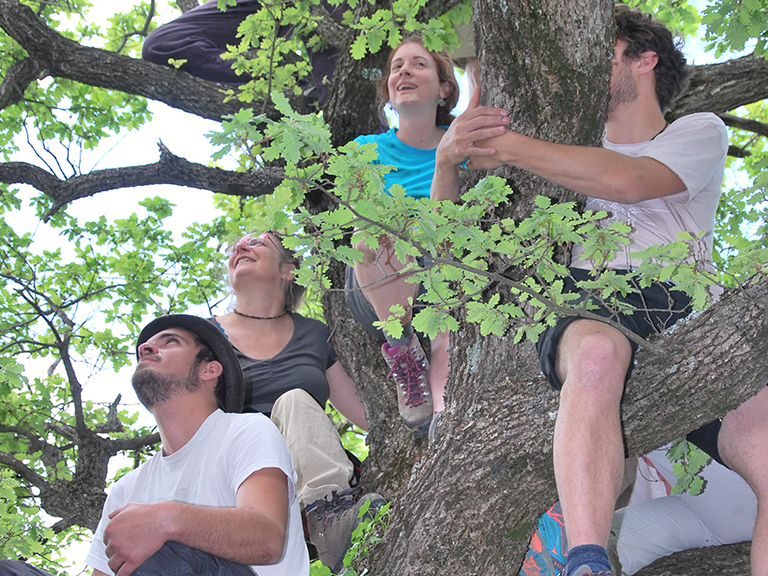 – Matériel léger et respectueux des arbres, tout est fait pour tutoyer la canopée en harmonie avec le vivant, et tenter, à notre niveau, d’aborder l’Intelligence Arboricole.
