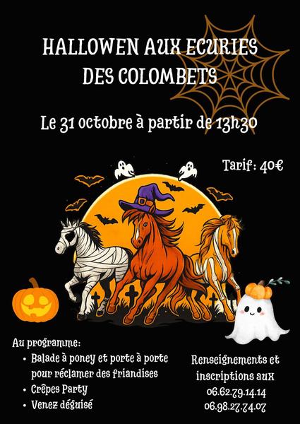 Balade à poney et porte à porte pour réclamer des friandises, crêpes party, venez déguisés pour fêter Halloween. Sur inscription.