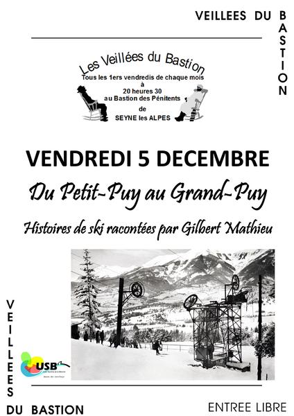 Vendredi 5 décembre 2025 à partir de 20h30. Histoires de ski du Petit-Puy au Grand-Puy par Gilbert Mathieu.