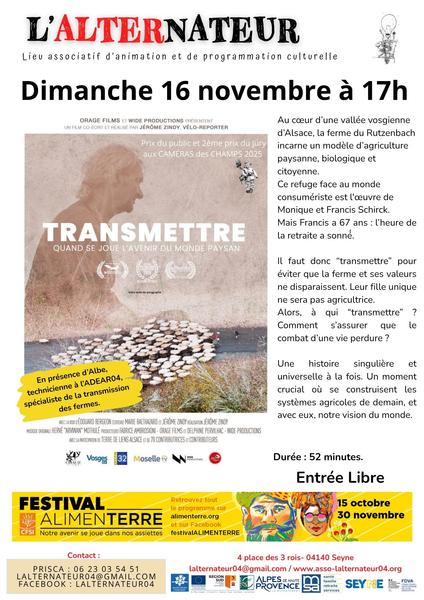 Projection du film "Transmettre" dans le cadre du "Festival Alimenterre".